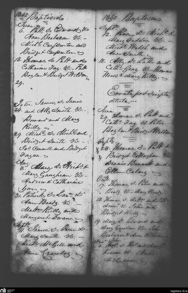 Castletown-Kilpatrick; County of Meath; Diocese of Meath. Baptisms, June 1842 to Nov. 1842