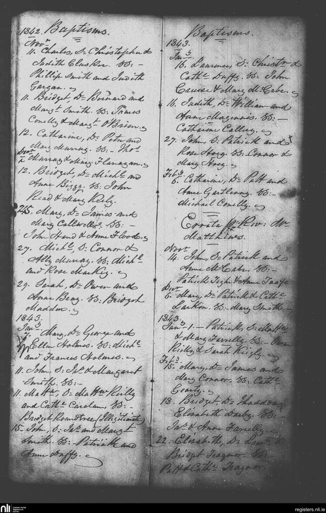 Castletown-Kilpatrick; County of Meath; Diocese of Meath. Baptisms, Nov. 1842 to Dec. 1843