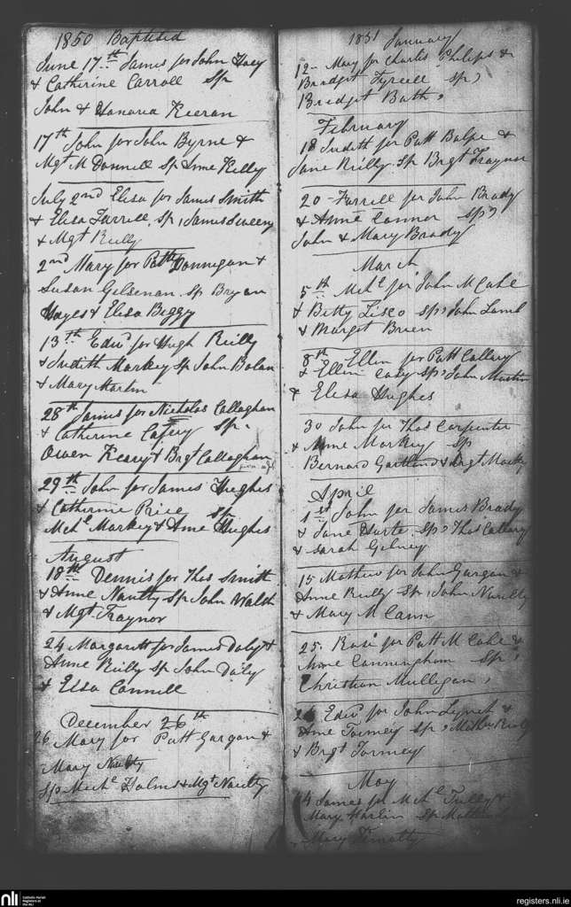 Castletown-Kilpatrick; County of Meath; Diocese of Meath. Baptisms, June 1850 to May 1851