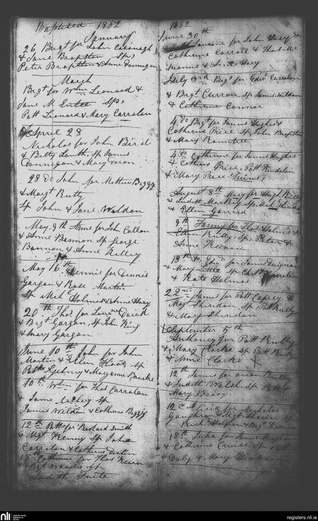 Castletown-Kilpatrick; County of Meath; Diocese of Meath. Baptisms, Jan. 1852 to Sep. 1852