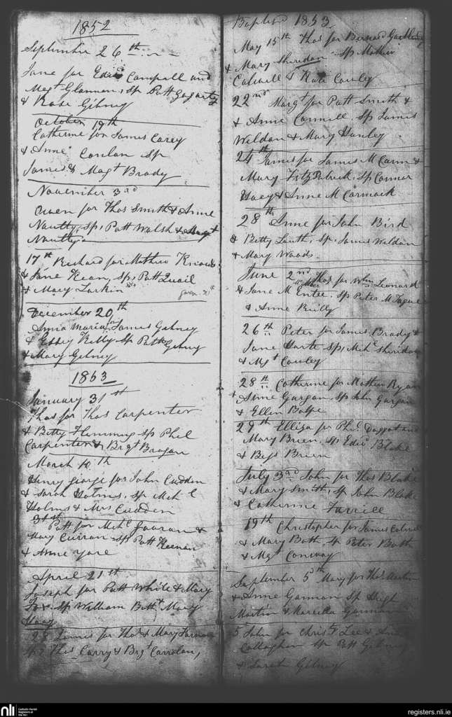Castletown-Kilpatrick; County of Meath; Diocese of Meath. Baptisms, Sep. 1852 to Sep. 1853