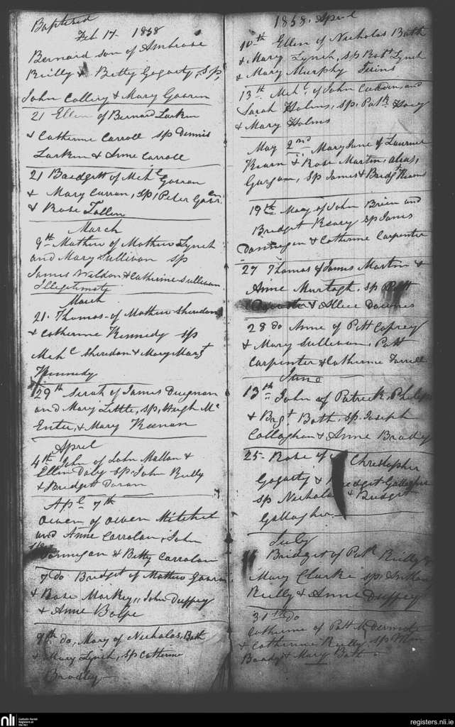 Castletown-Kilpatrick; County of Meath; Diocese of Meath. Baptisms, Feb. 1858 to July 1858