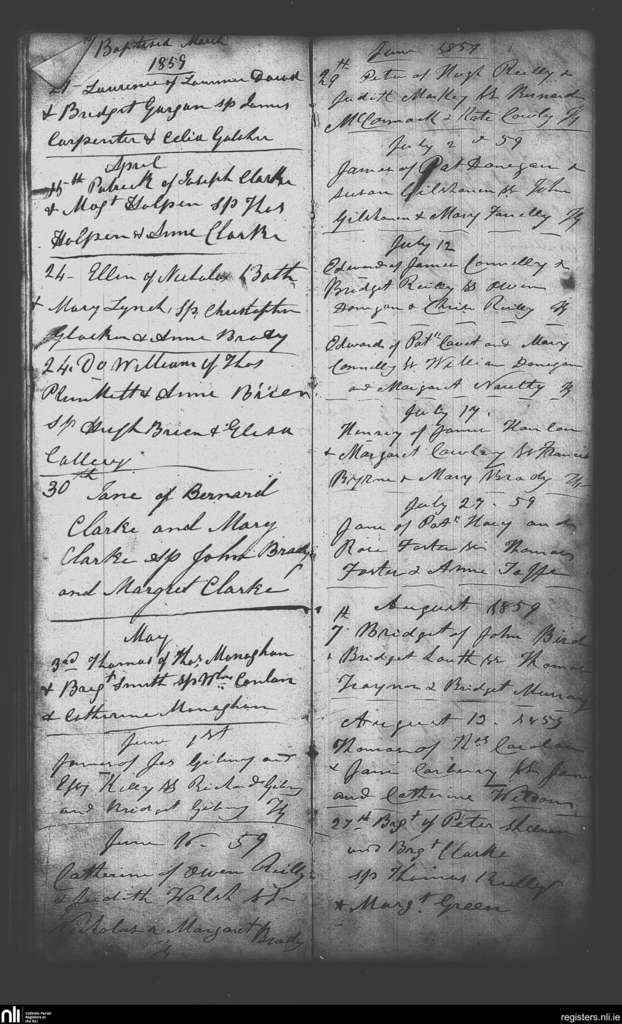 Castletown-Kilpatrick; County of Meath; Diocese of Meath. Baptisms, Mar. 1859 to Aug. 1859
