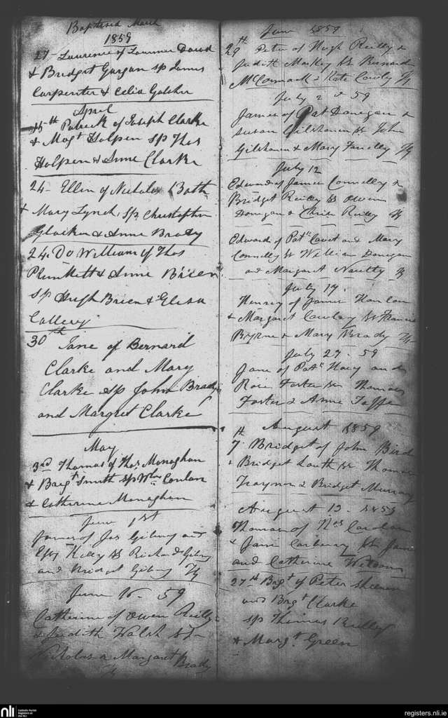 Castletown-Kilpatrick; County of Meath; Diocese of Meath. Baptisms, Mar. 1859 to Aug. 1859