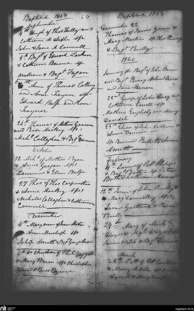 Castletown-Kilpatrick; County of Meath; Diocese of Meath. Baptisms, Sep. 1859 to Mar. 1860