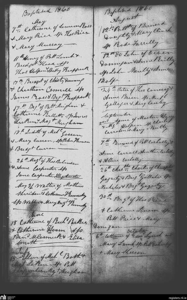 Castletown-Kilpatrick; County of Meath; Diocese of Meath. Baptisms, May 1860 to Oct. 1860