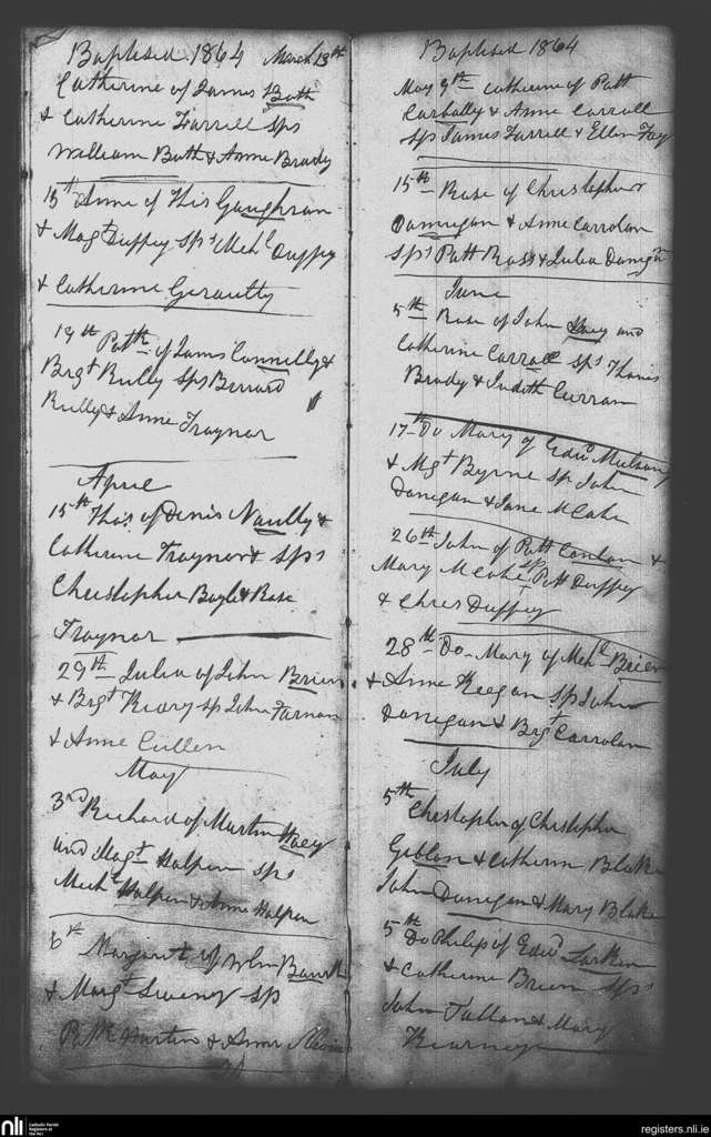 Castletown-Kilpatrick; County of Meath; Diocese of Meath. Baptisms, Mar. 1864 to July 1864