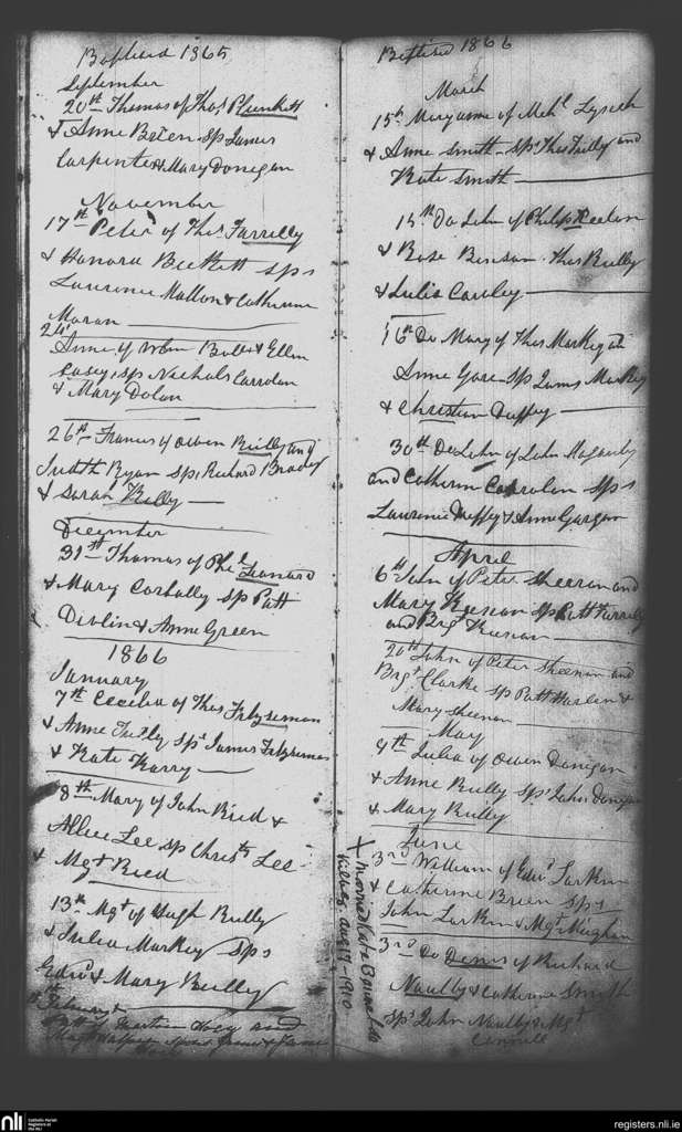 Castletown-Kilpatrick; County of Meath; Diocese of Meath. Baptisms, Sep. 1865 to June 1866