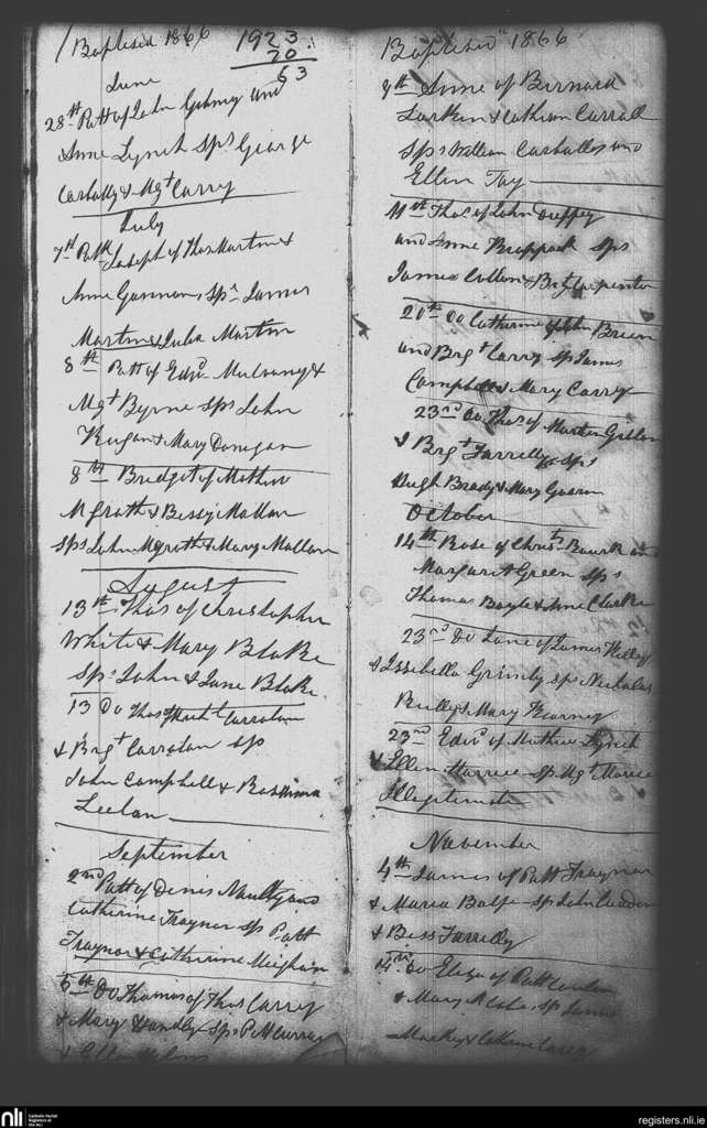 Castletown-Kilpatrick; County of Meath; Diocese of Meath. Baptisms, June 1866 to Nov. 1866