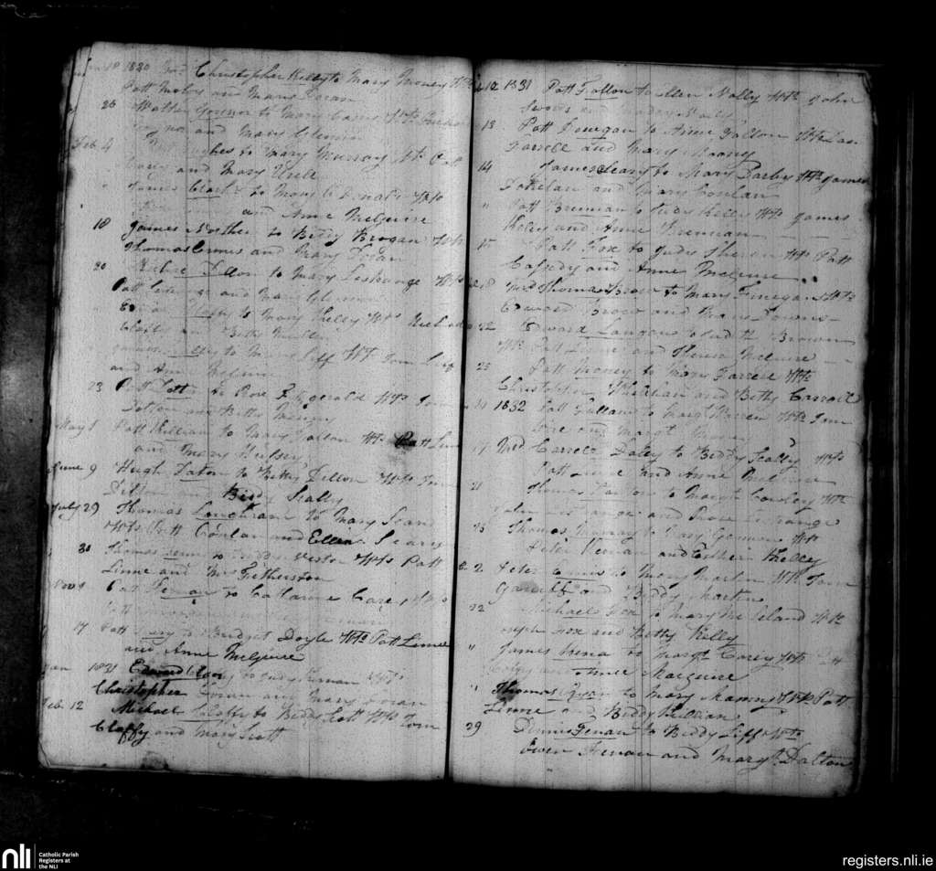 Dysart; County of Westmeath; Diocese of Meath. Marriages, Jan. 1830 to Feb. 1832