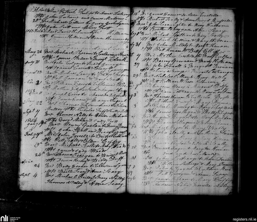 Dysart; County of Westmeath; Diocese of Meath. Marriages, Nov. 1851 to May 1857