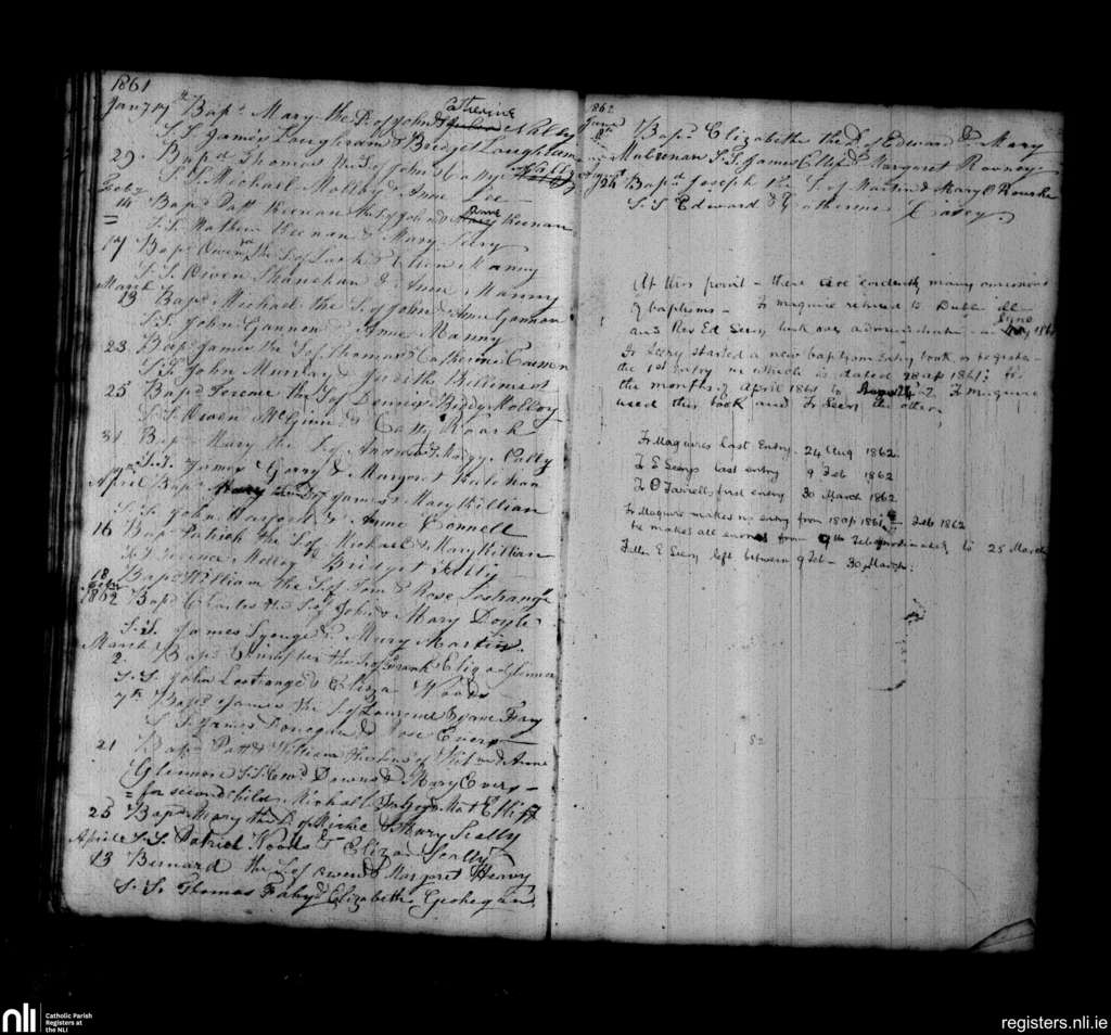 Dysart; County of Westmeath; Diocese of Meath. Baptisms, Jan. 1861 to Aug. 1862