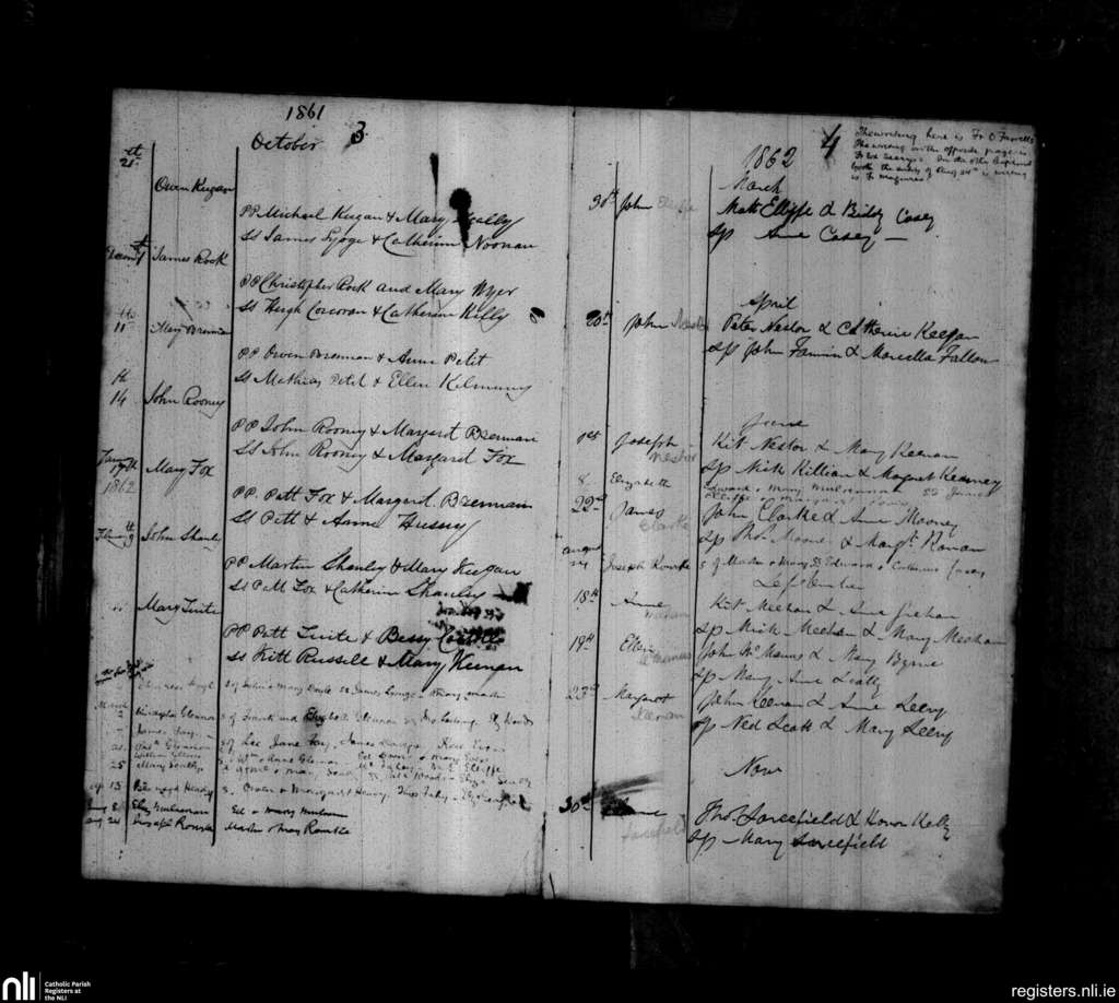 Dysart; County of Westmeath; Diocese of Meath. Baptisms, Oct. 1861 to Nov. 1862