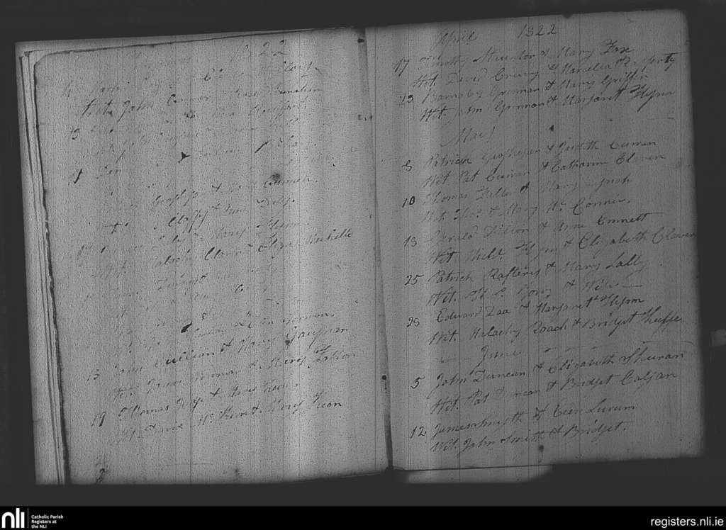 Clara and Horseleap; County of Offaly, Westmeath; Diocese of Meath. Marriages, Feb. 1822 to June 1822