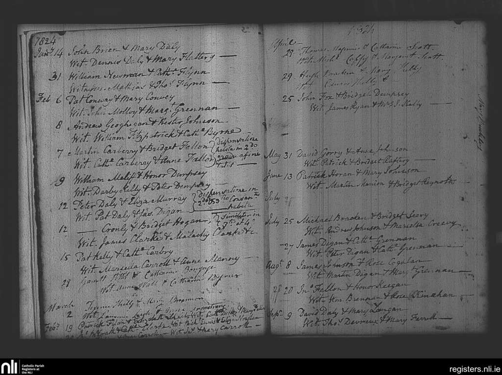 Clara and Horseleap; County of Offaly, Westmeath; Diocese of Meath. Marriages, Jan. 1824 to Sep. 1824