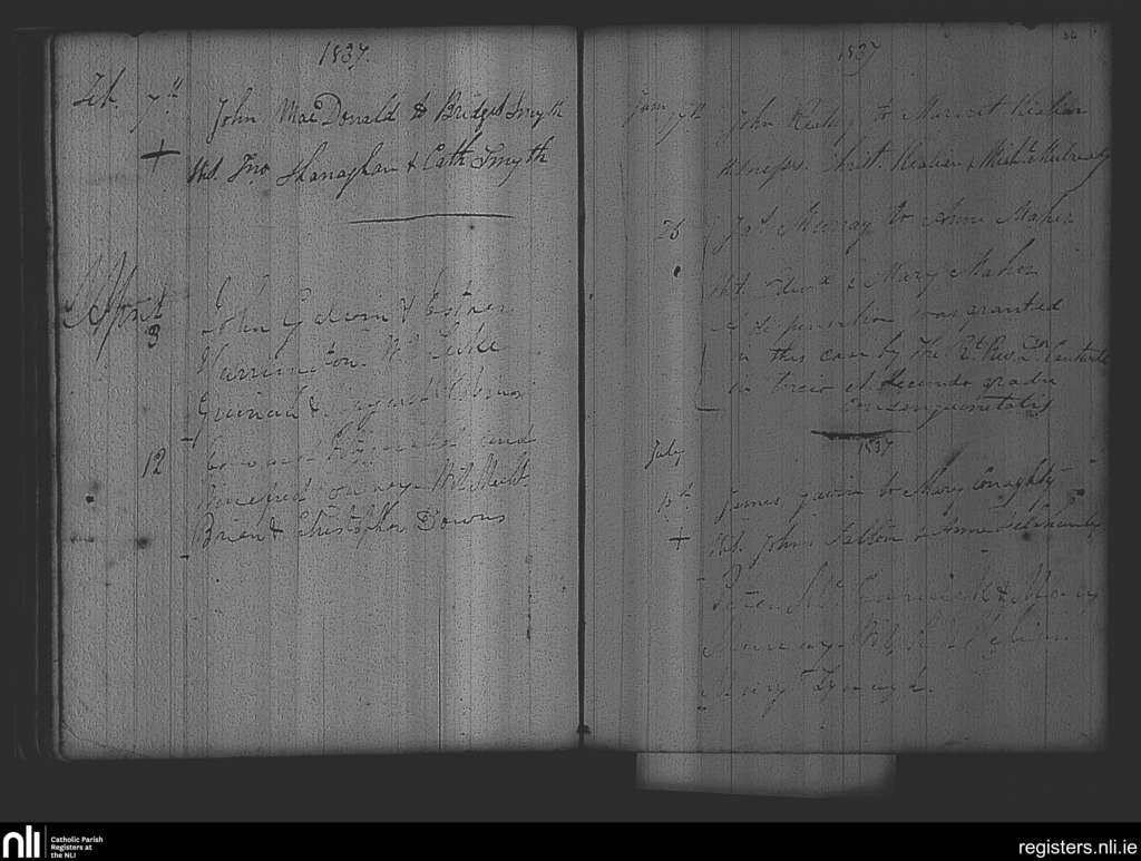 Clara and Horseleap; County of Offaly, Westmeath; Diocese of Meath. Marriages, Feb. 1837 to July 1837