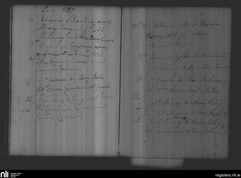 Clara and Horseleap; County of Offaly, Westmeath; Diocese of Meath. Marriages, July 1837 to Dec. 1837