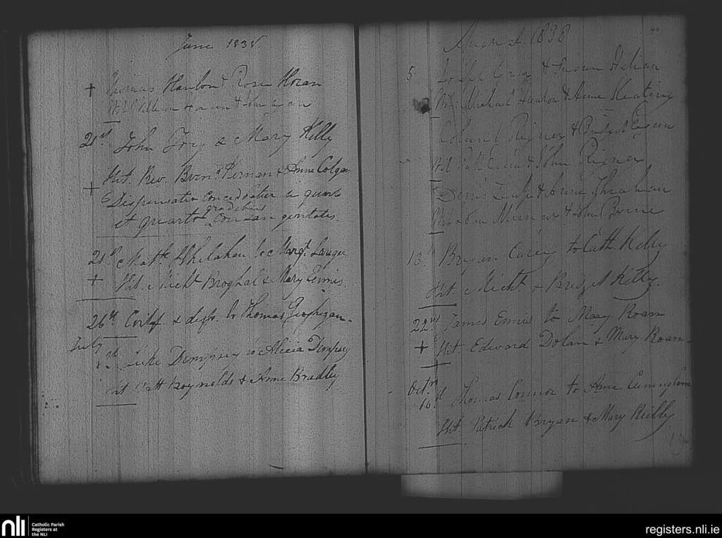 Clara and Horseleap; County of Offaly, Westmeath; Diocese of Meath. Marriages, June 1838 to Oct. 1838