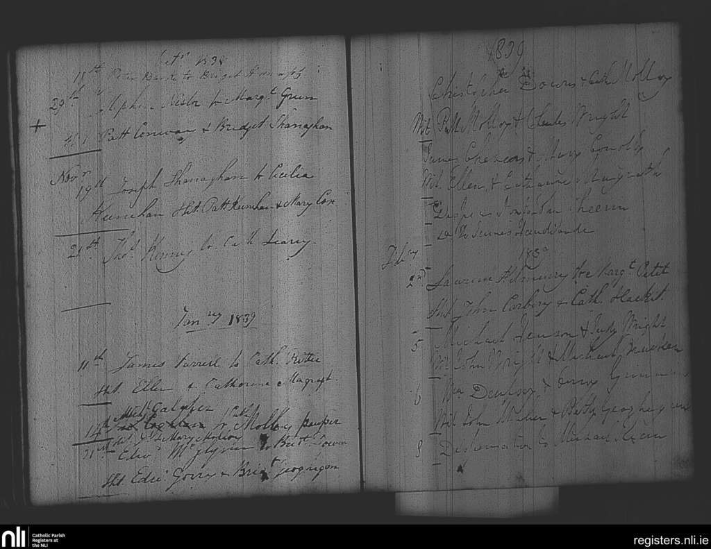 Clara and Horseleap; County of Offaly, Westmeath; Diocese of Meath. Marriages, Oct. 1838 to Feb. 1839