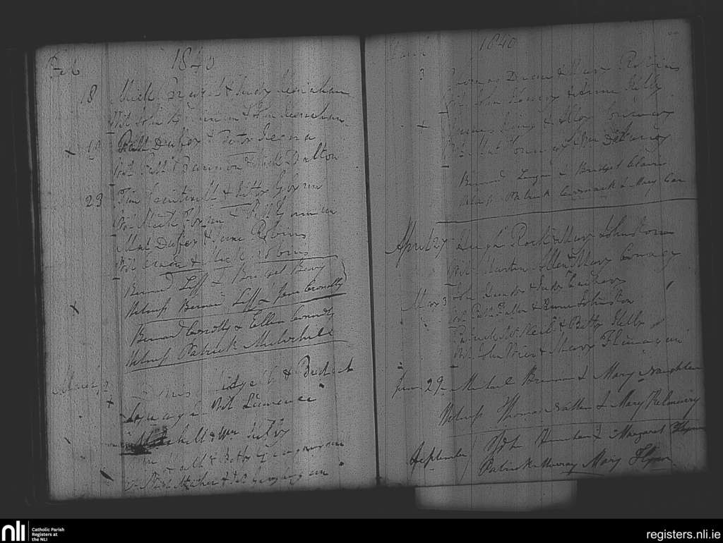 Clara and Horseleap; County of Offaly, Westmeath; Diocese of Meath. Marriages, Feb. 1840 to Sep. 1840