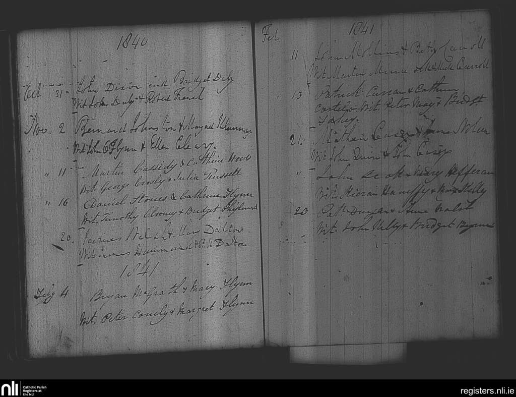 Clara and Horseleap; County of Offaly, Westmeath; Diocese of Meath. Marriages, Oct. 1840 to Feb. 1841