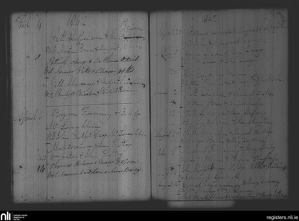 Clara and Horseleap; County of Offaly, Westmeath; Diocese of Meath. Marriages, Feb. 1842 to Sep. 1842