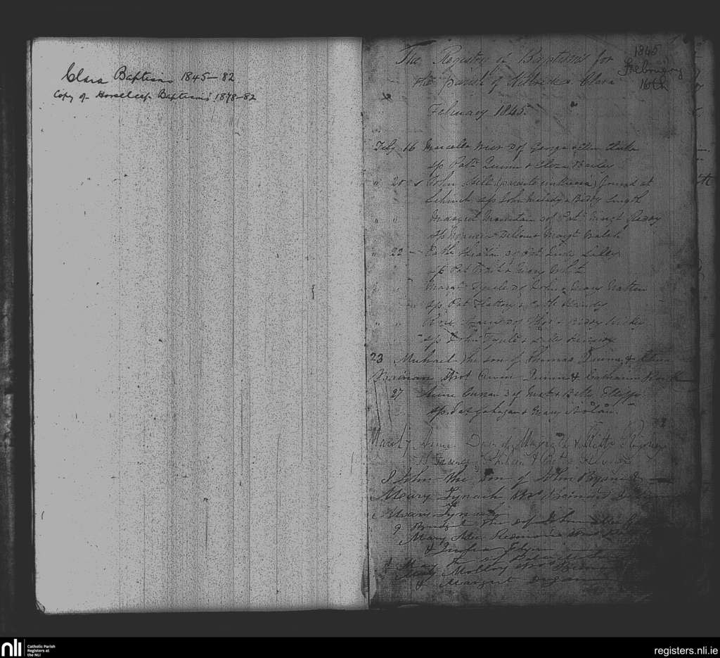 Clara and Horseleap; County of Westmeath, Offaly; Diocese of Meath. Baptisms, Feb. 1845 to Mar. 1845