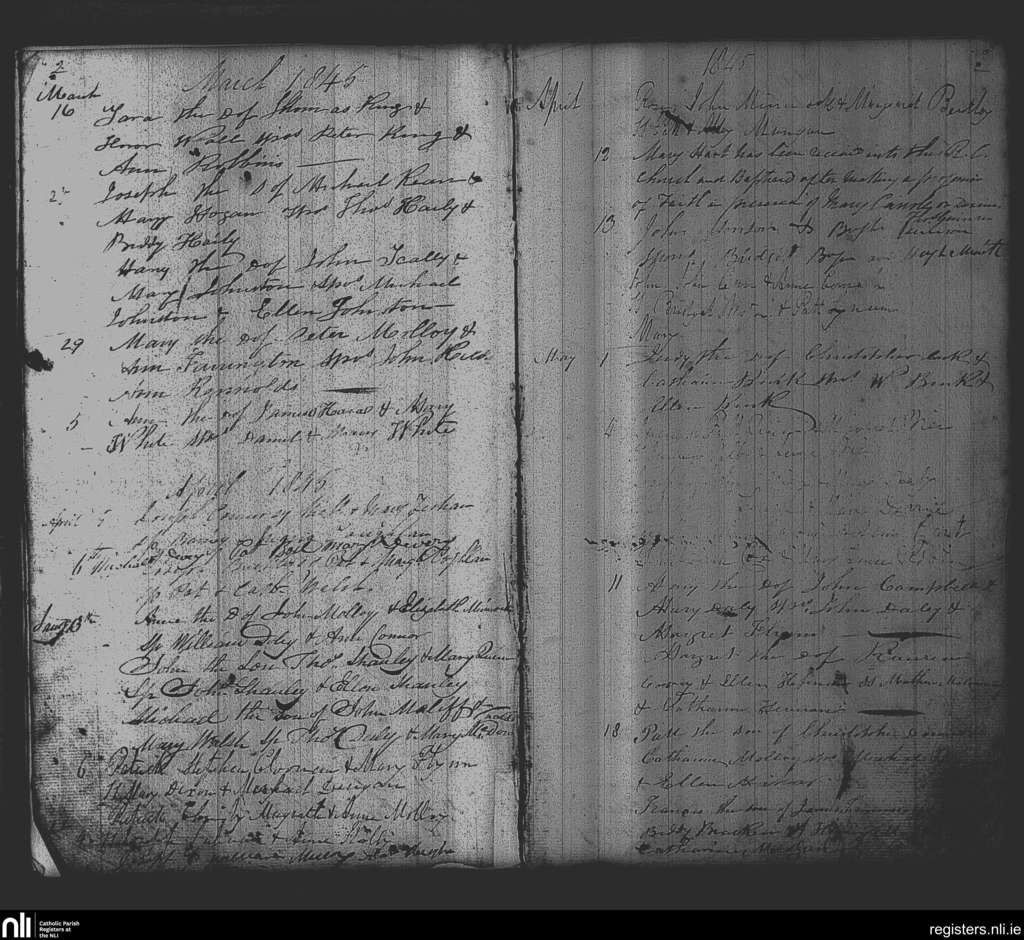 Clara and Horseleap; County of Westmeath, Offaly; Diocese of Meath. Baptisms, Mar. 1845 to May 1845