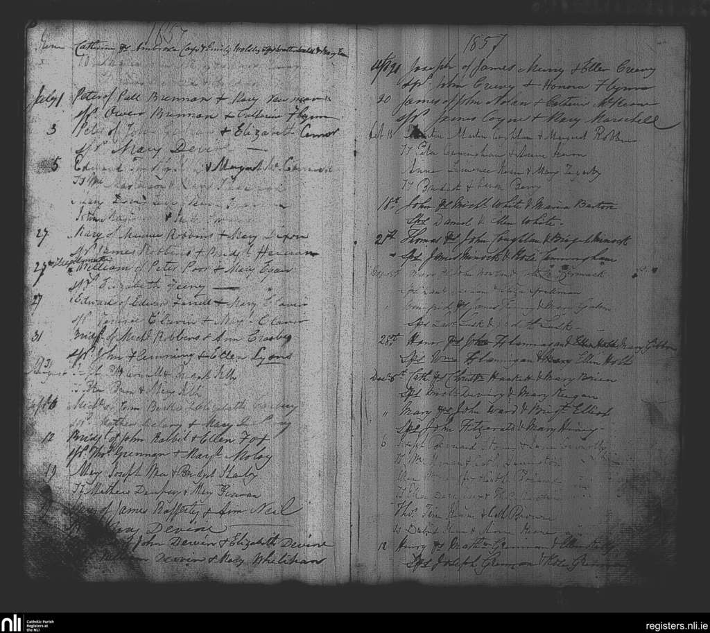 Clara and Horseleap; County of Westmeath, Offaly; Diocese of Meath. Baptisms, June 1857 to Dec. 1857