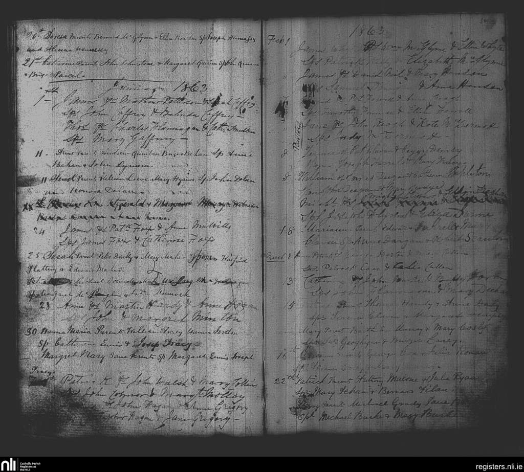 Clara and Horseleap; County of Westmeath, Offaly; Diocese of Meath. Baptisms, Dec. 1862 to Mar. 1863