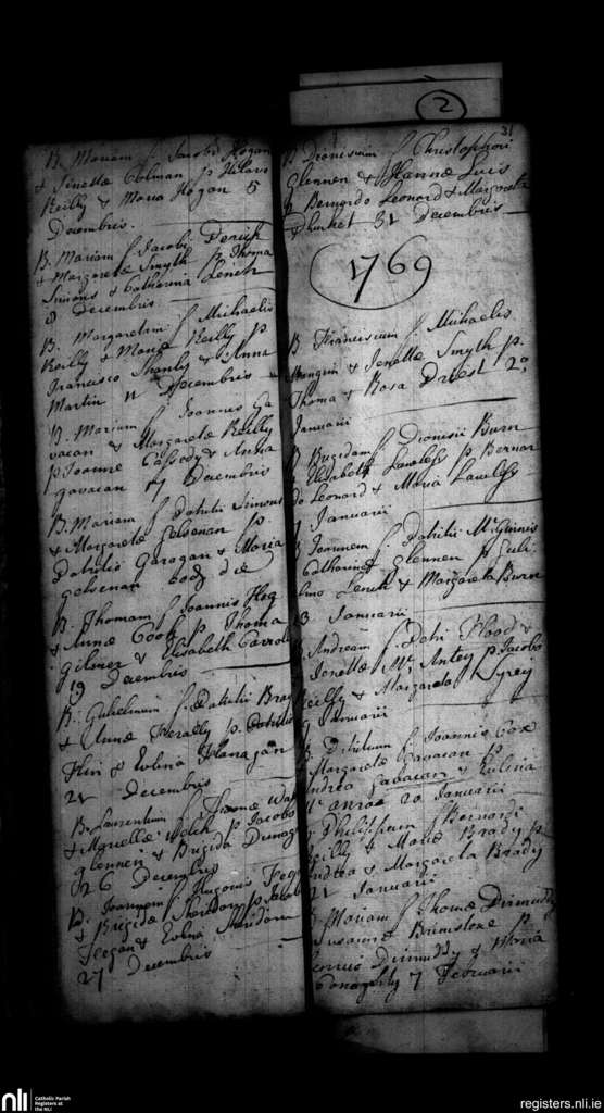 Clonmellon; County of Meath, Westmeath; Diocese of Meath. Baptisms, Dec. 1768 to Feb. 1769