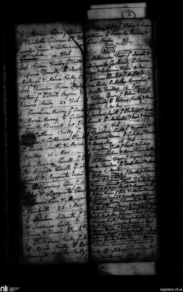 Clonmellon; County of Meath, Westmeath; Diocese of Meath. Baptisms, Feb. 1772 to Sep. 1773
