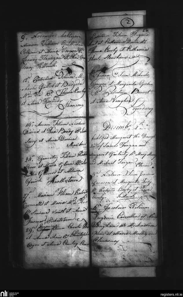 Clonmellon; County of Meath, Westmeath; Diocese of Meath. Baptisms, Nov. 1781 to Dec. 1781