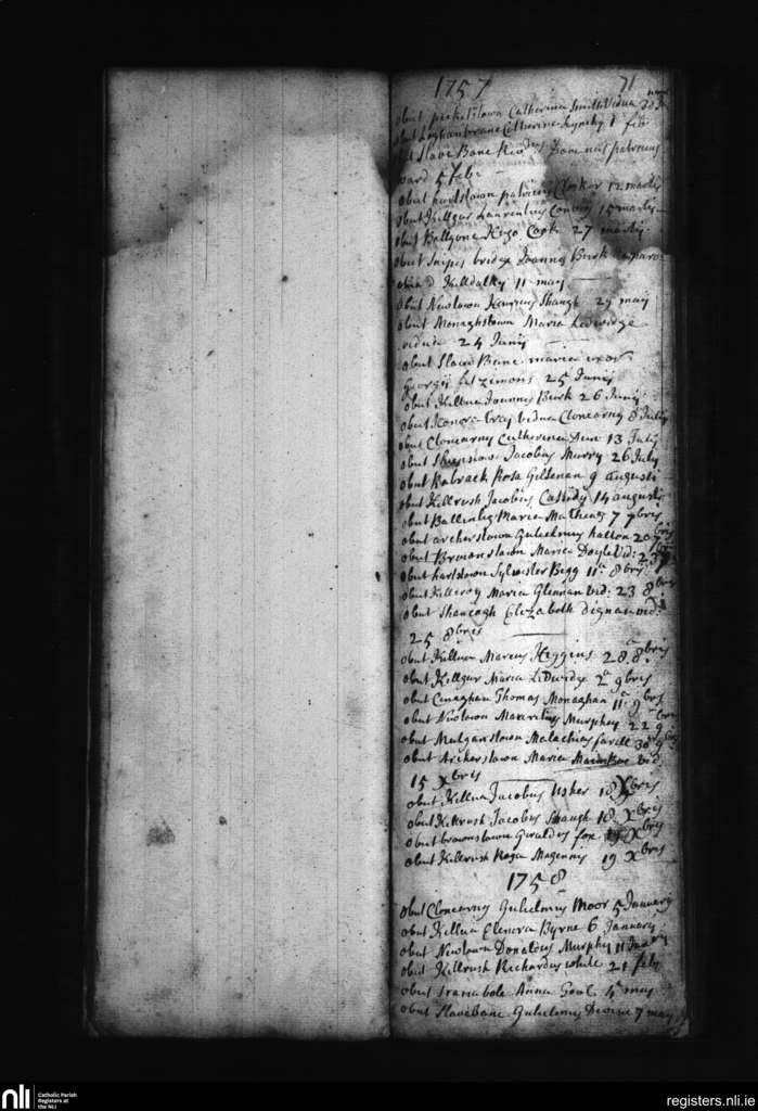 Clonmellon; County of Meath, Westmeath; Diocese of Meath. Deaths, Feb. 1757 to May 1758