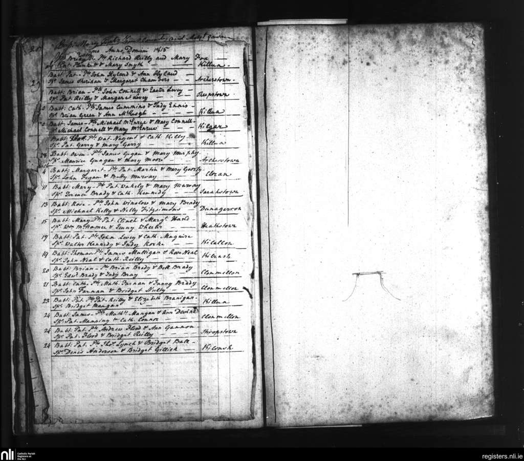 Clonmellon; County of Meath, Westmeath; Diocese of Meath. Baptisms, Feb. 1815 to Mar. 1815