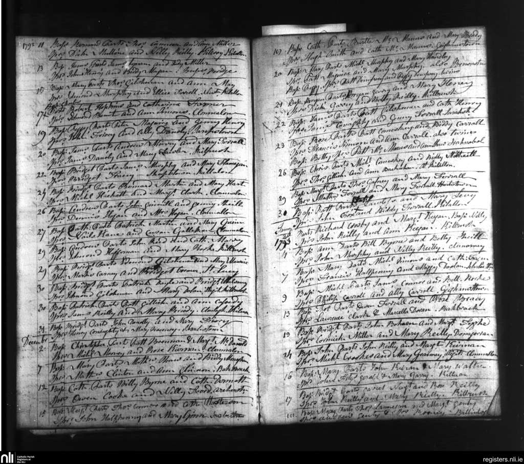Clonmellon; County of Westmeath, Meath; Diocese of Meath. Baptisms, Nov. 1792 to Jan. 1793