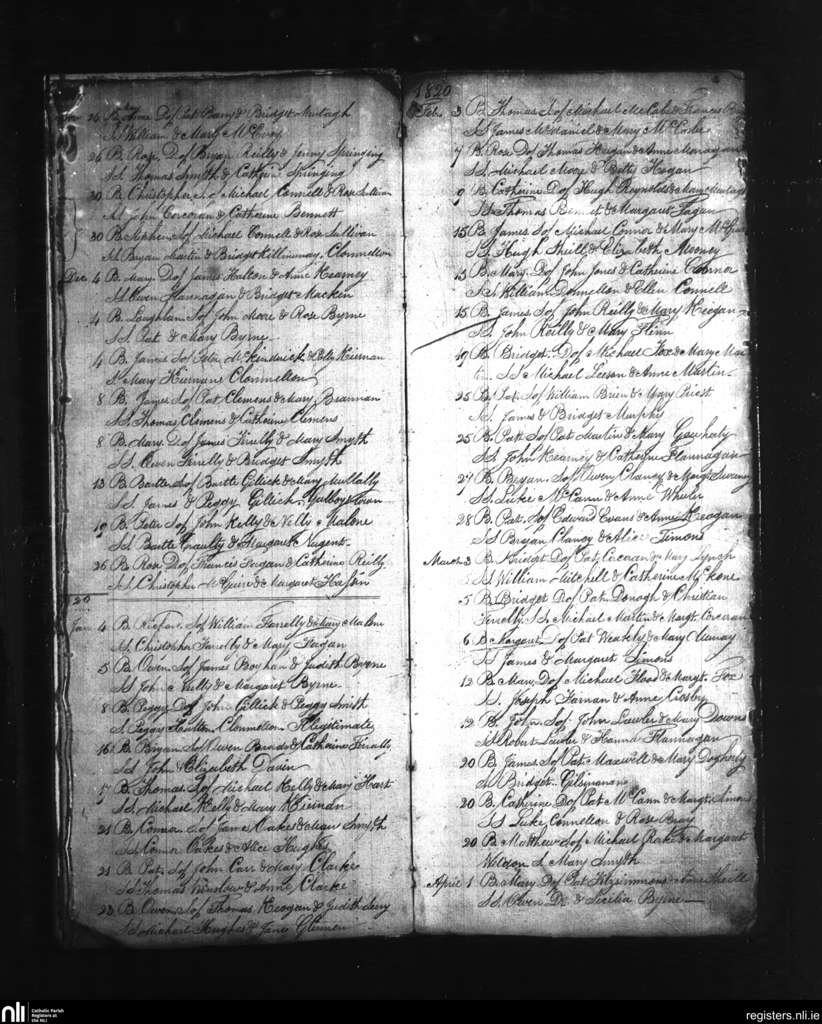 Clonmellon; County of Westmeath, Meath; Diocese of Meath. Baptisms, Nov. 1819 to Apr. 1820