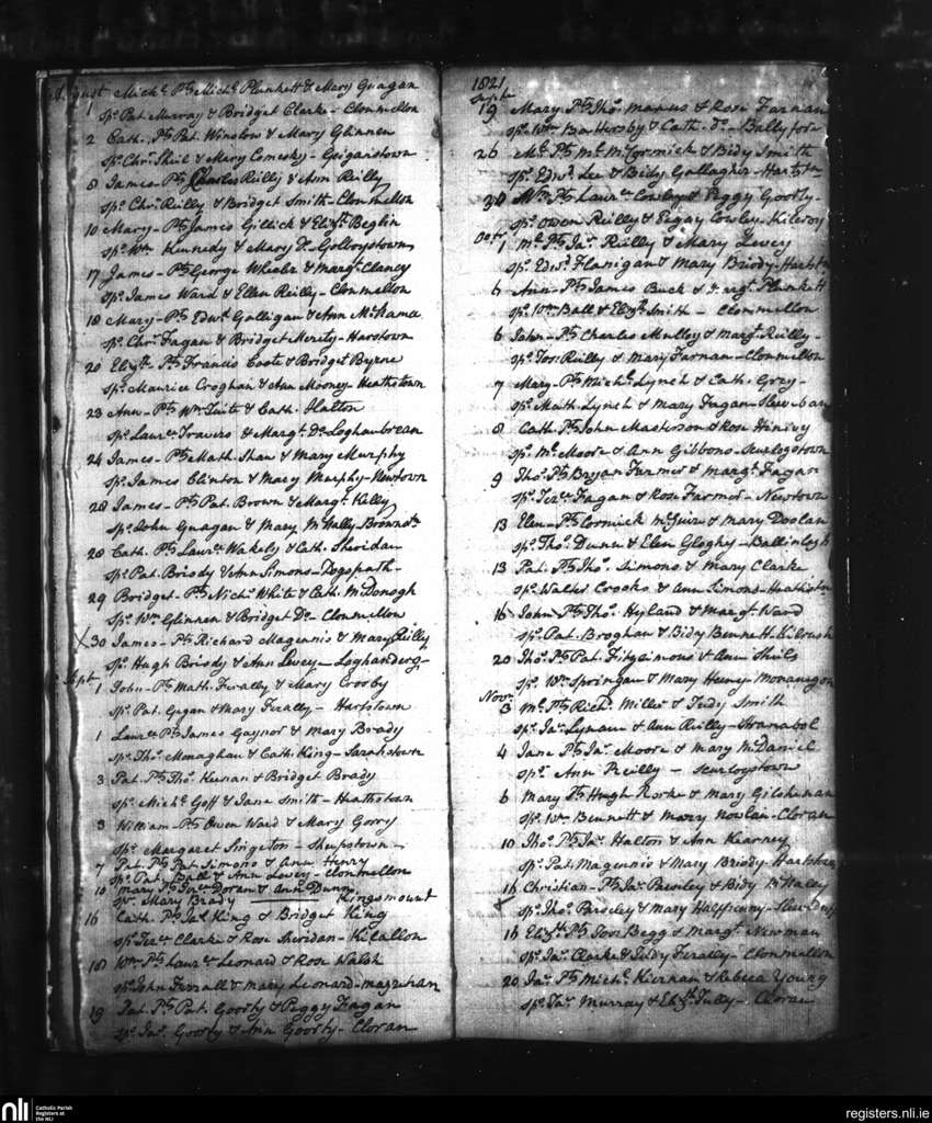 Clonmellon; County of Westmeath, Meath; Diocese of Meath. Baptisms, Aug. 1821 to Nov. 1821