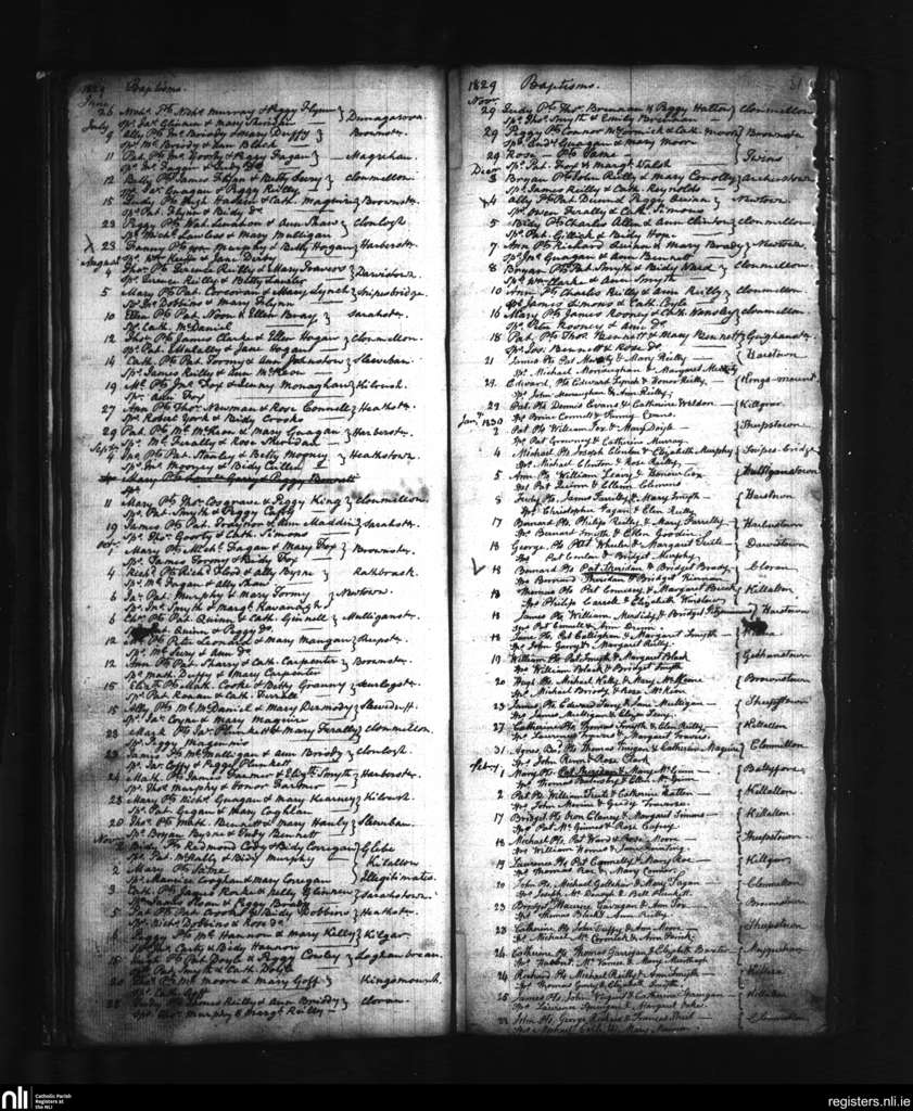 Clonmellon; County of Westmeath, Meath; Diocese of Meath. Baptisms, June 1829 to Feb. 1830