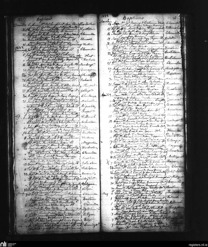 Clonmellon; County of Westmeath, Meath; Diocese of Meath. Baptisms, Dec. 1831 to May 1832