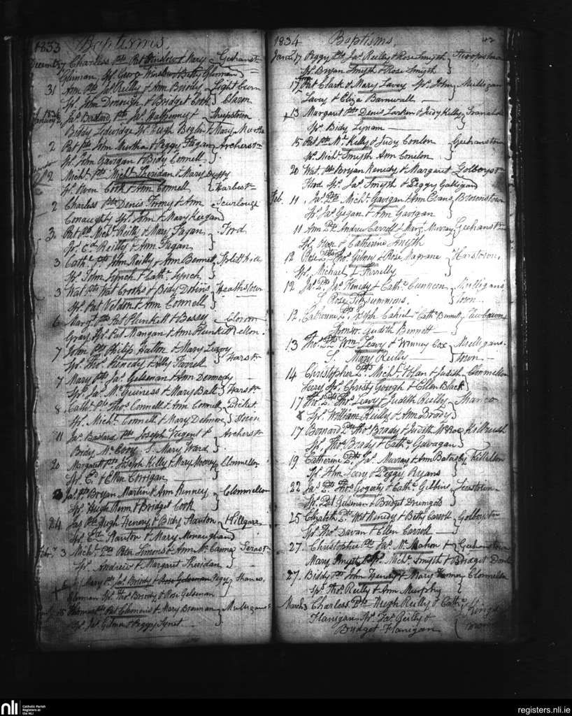 Clonmellon; County of Westmeath, Meath; Diocese of Meath. Baptisms, Dec. 1833 to Mar. 1834