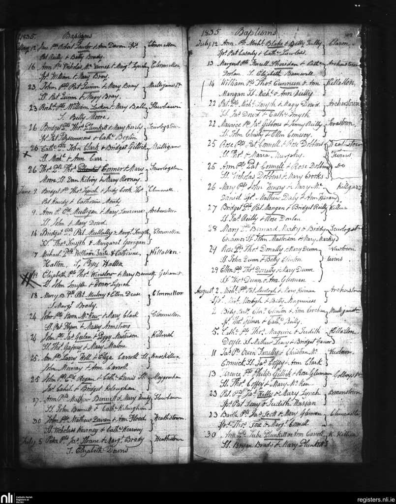 Clonmellon; County of Westmeath, Meath; Diocese of Meath. Baptisms, May 1835 to Aug. 1835