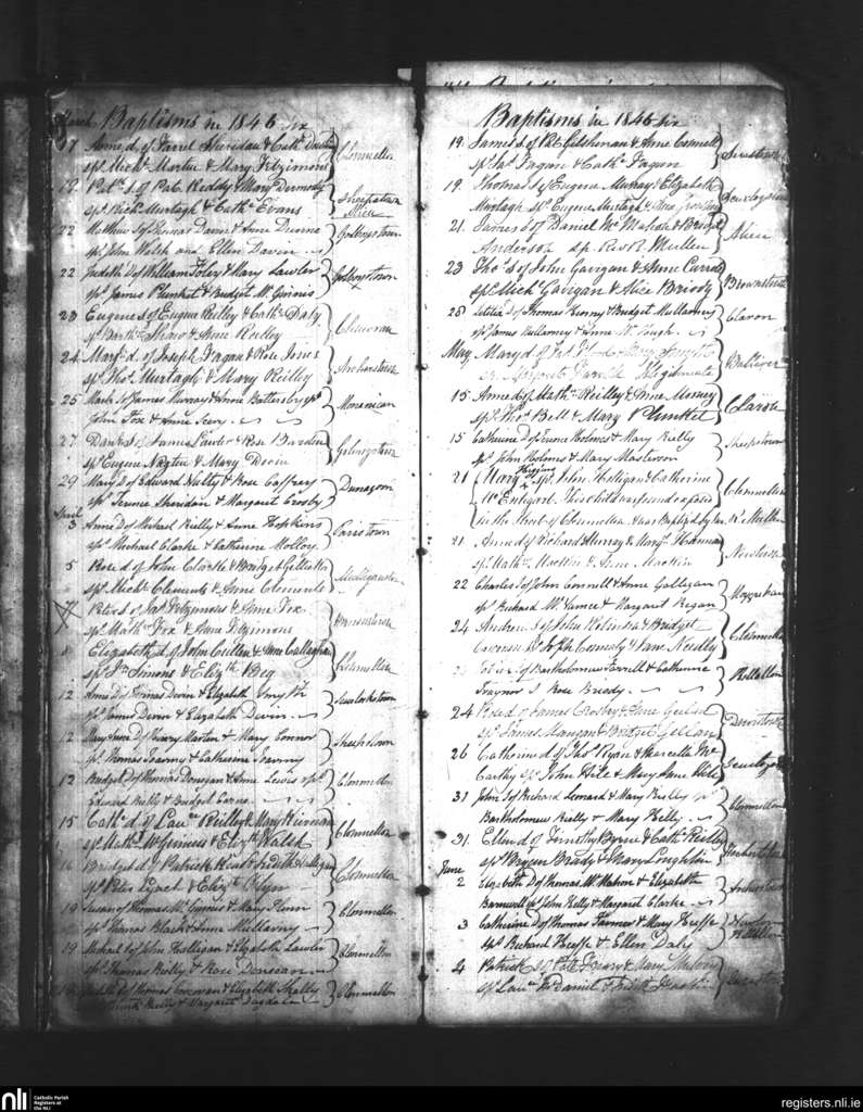 Clonmellon; County of Westmeath, Meath; Diocese of Meath. Baptisms, Mar. 1846 to June 1846