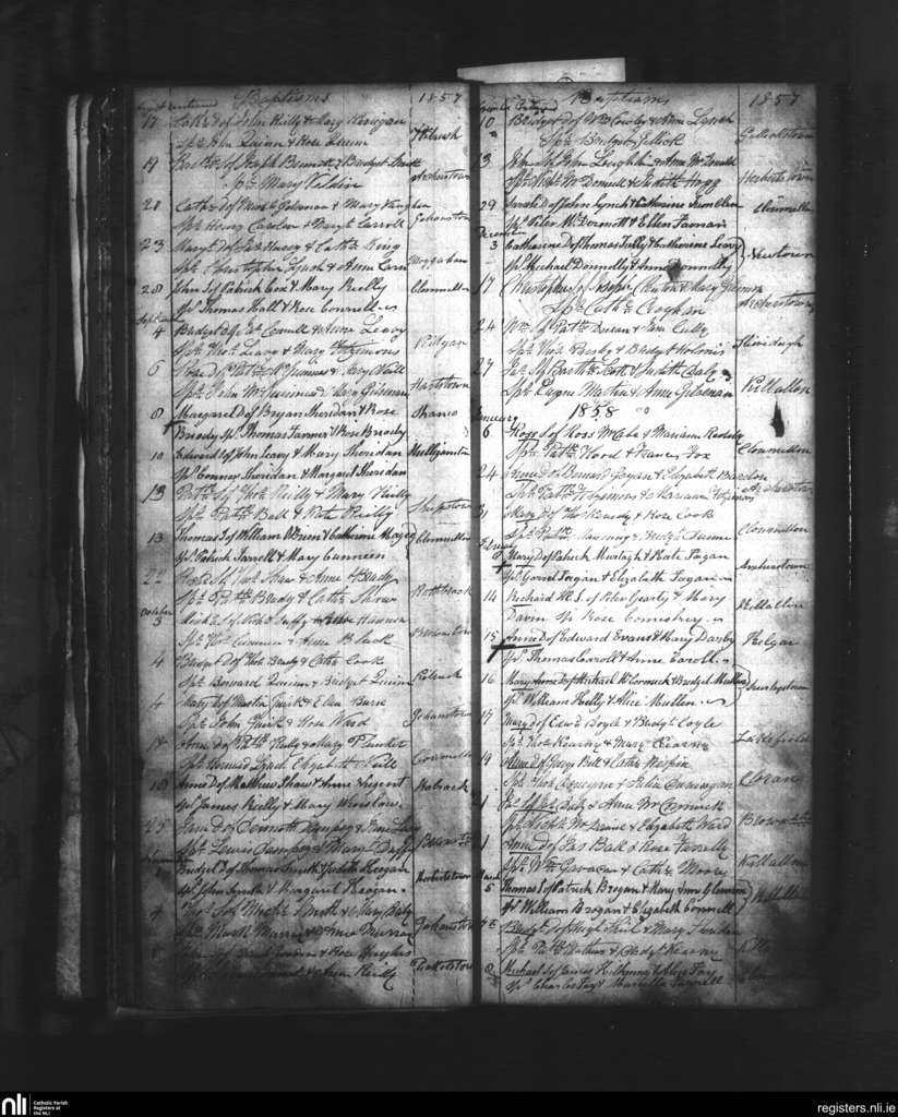 Clonmellon; County of Westmeath, Meath; Diocese of Meath. Baptisms, Aug. 1857 to Mar. 1858