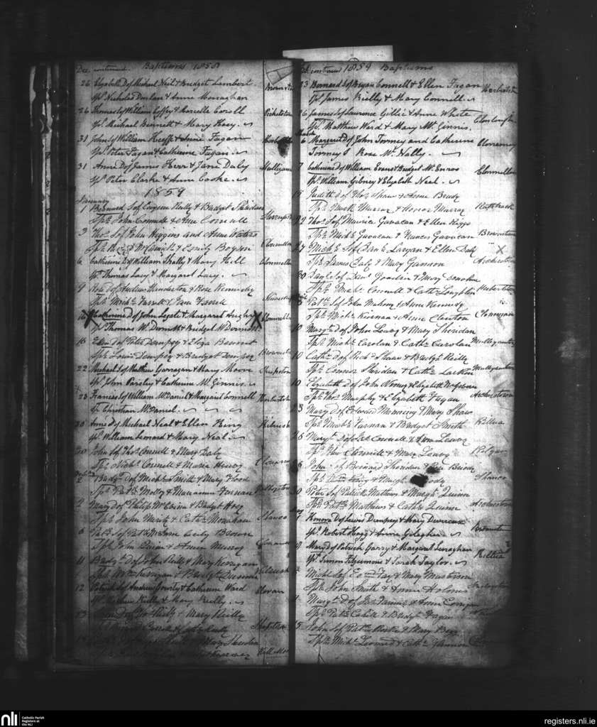 Clonmellon; County of Westmeath, Meath; Diocese of Meath. Baptisms, Dec. 1858 to May 1859