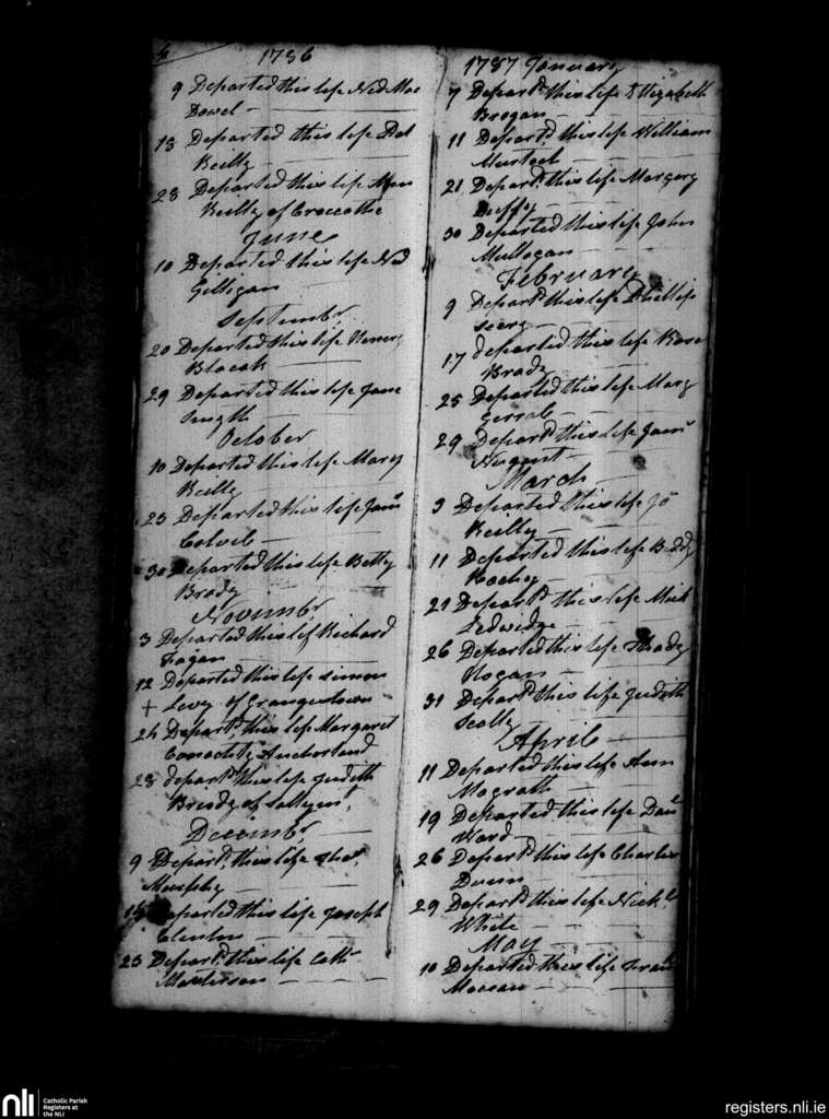 Collinstown; County of Westmeath; Diocese of Meath. Deaths, May 1786 to May 1787