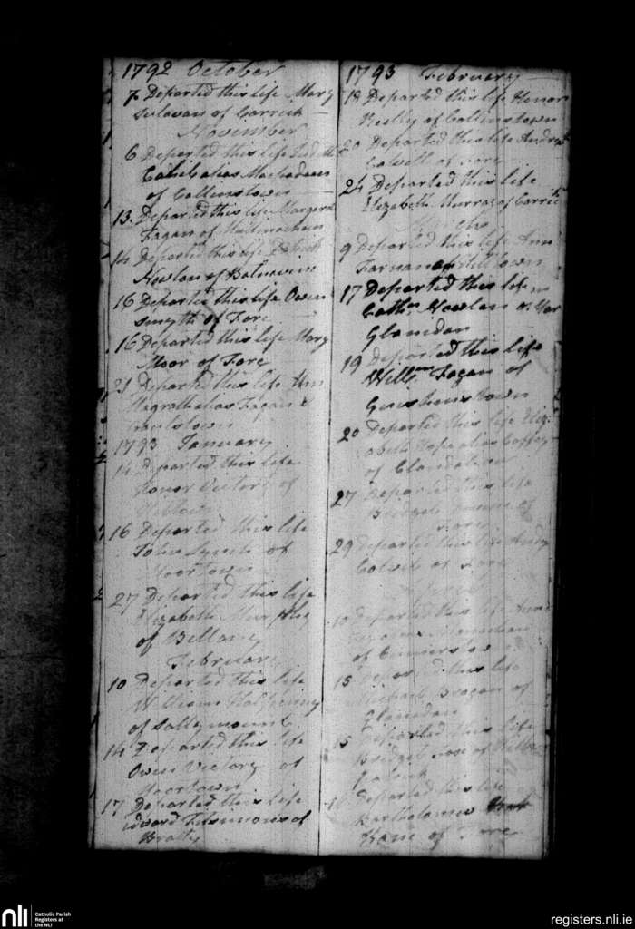 Collinstown; County of Westmeath; Diocese of Meath. Deaths, Oct. 1792 to Apr. 1793