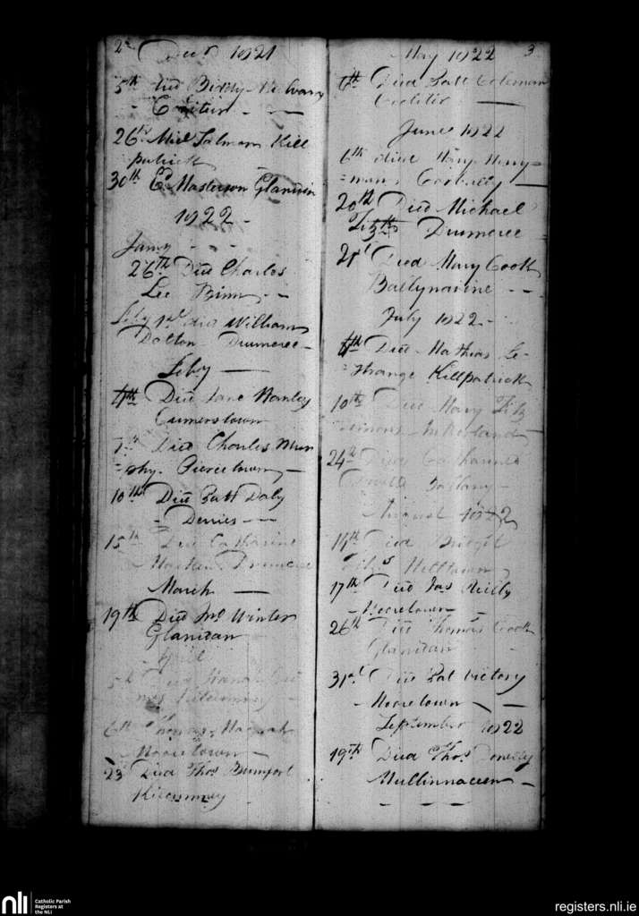 Collinstown; County of Westmeath; Diocese of Meath. Deaths, Dec. 1821 to Sep. 1822