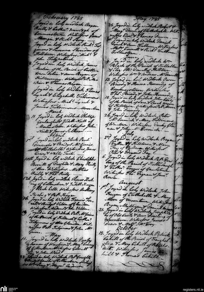 Collinstown; County of Westmeath; Diocese of Meath. Marriages, Feb. 1785 to Oct. 1785