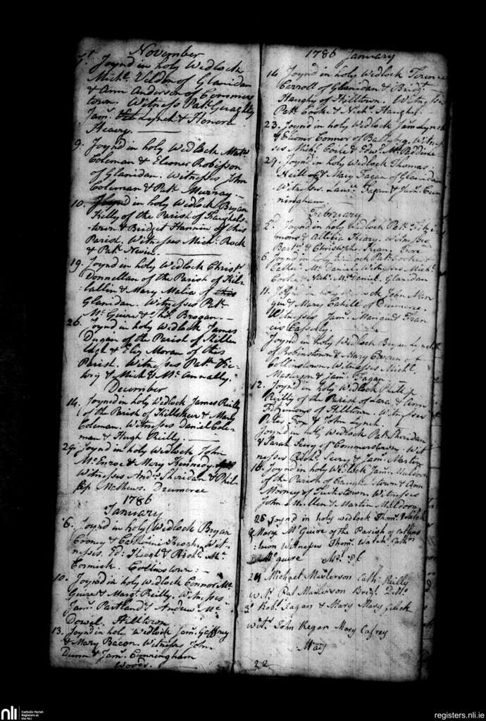 Collinstown; County of Westmeath; Diocese of Meath. Marriages, Nov. 1785 to May 1786